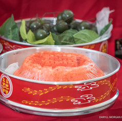 Their home was lovely, and the decor was perfect. It really set the tone for the ceremony to come. After awhile, we received word that the groom's party had arrived. In the Vietnamese tradition, there is a 'presentation of gifts.' The grooms and his family come to the bride-to-be's home, and present gifts to her and her family. The two eldest exchange words, and the ceremony begins.