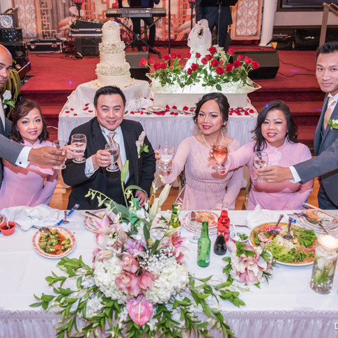 The reception was an interesting blend between American and Vietnamese wedding traditions. First off, like the celebrities that they are, Mike and Linh took photos with EVERY guest at the wedding, at their photo booth. I thought that was really special - every guest will have a photo they can cherish with the bride and groom, forever. Click here to find your picture!