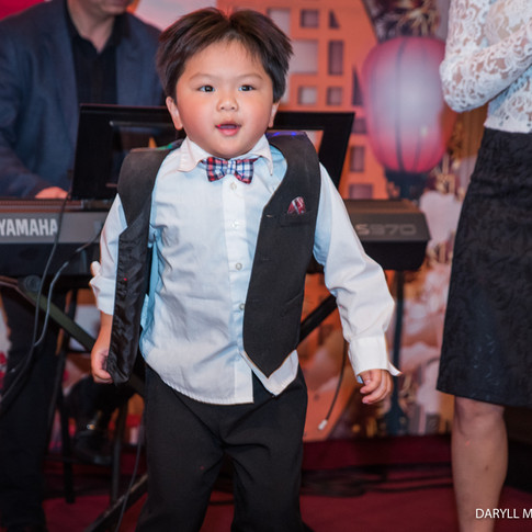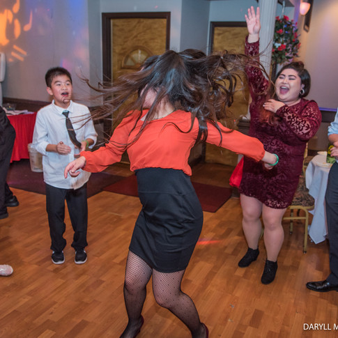 After this, the real fun began. What became a truly entertaining event, were a couple of wedding games between the bride and groom. The first one was a game (or shall I say test) of like-mindedness. The emcee would read out a situation, like, "who takes the longest amount of time getting ready," and the bride and groom would respond by raising the corresponding shoe, while facing away from each other, of the person they believed was the answer to the question. Of course, there were some questions where they were not in 100% agreement, and that made it even funnier!